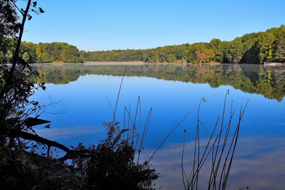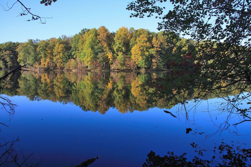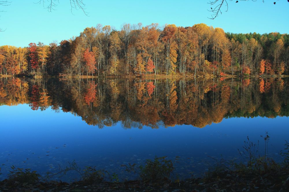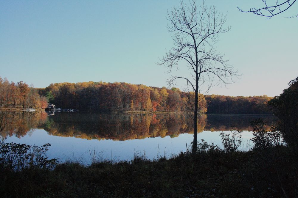 这其实是同一片山水,初秋时刻还是青绿。 如今秋色浓重的日子,似乎像一杯酽茶,一杯经年老窖的红酒,色彩浓得沉甸甸的。 这之间大概有两三周的时间。这一片树和水因为季节的变化像是一个人30岁和50岁,岁月的大手不光涂抹山河也雕刻人的容貌身心。