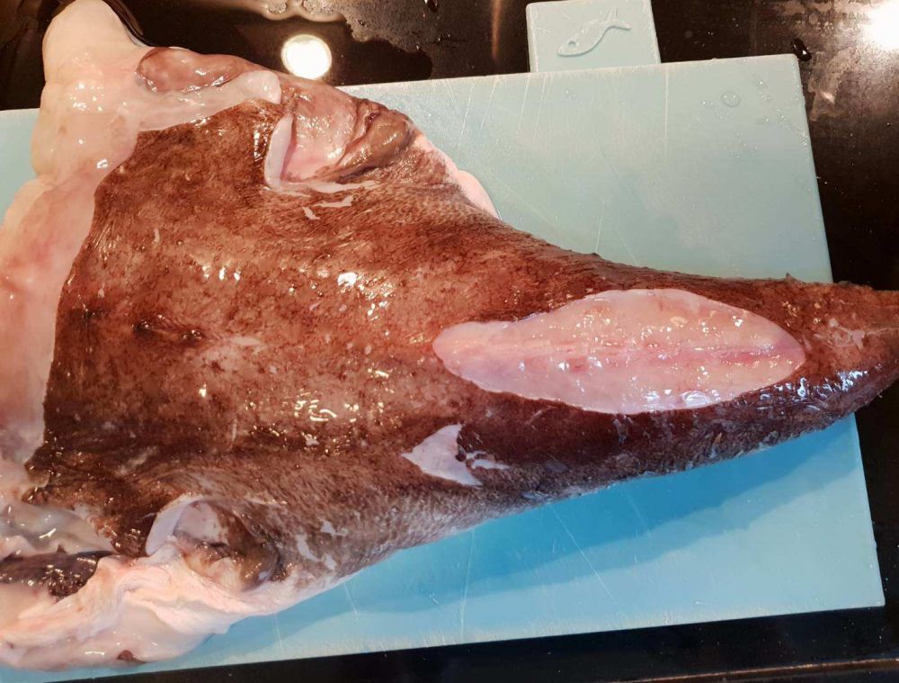 这是我买到的鮟鱇鱼段。这里出售鮟鱇鱼,一般只卖这一段,鱼头很少见到。其实如果处理得好,鱼头是很好吃的。我买到过一回鱼头(便宜很多)就用这个红烧鮟鱇鱼腩鱼皮的方法烹制,特别好吃(但是不好看)。