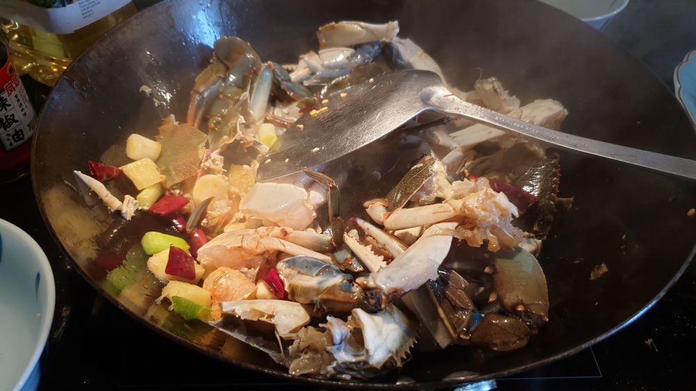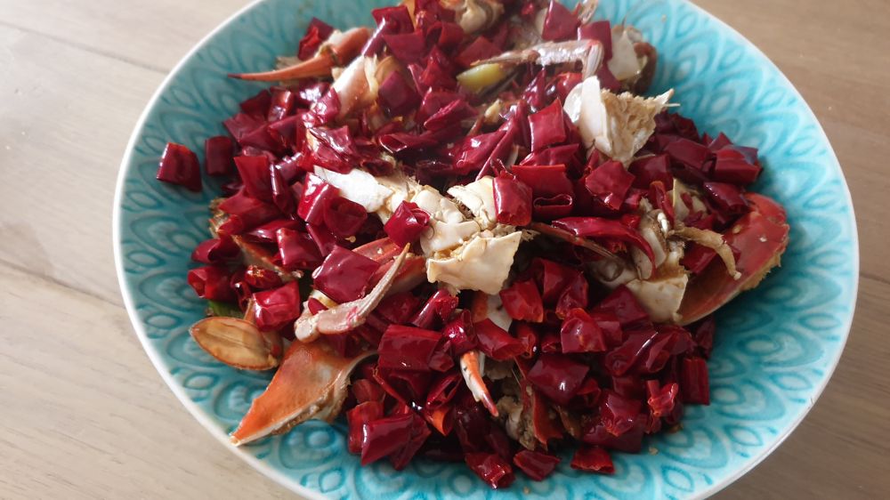 北京的荣小馆有一道菜叫做辣烧水潺(九肚鱼)。这道菜外形红亮喜庆,口感香辣鲜甜,让我想起了多年前在海南大东海吃到了一道辣烧螃蟹。多亏了荣小馆儿的开放厨房,看到了这道菜制作的全过程,并且向厨师请教了做法。借鉴辣烧水潺的做法,成功的复制了这道当年在海南吃过的辣烧螃蟹。