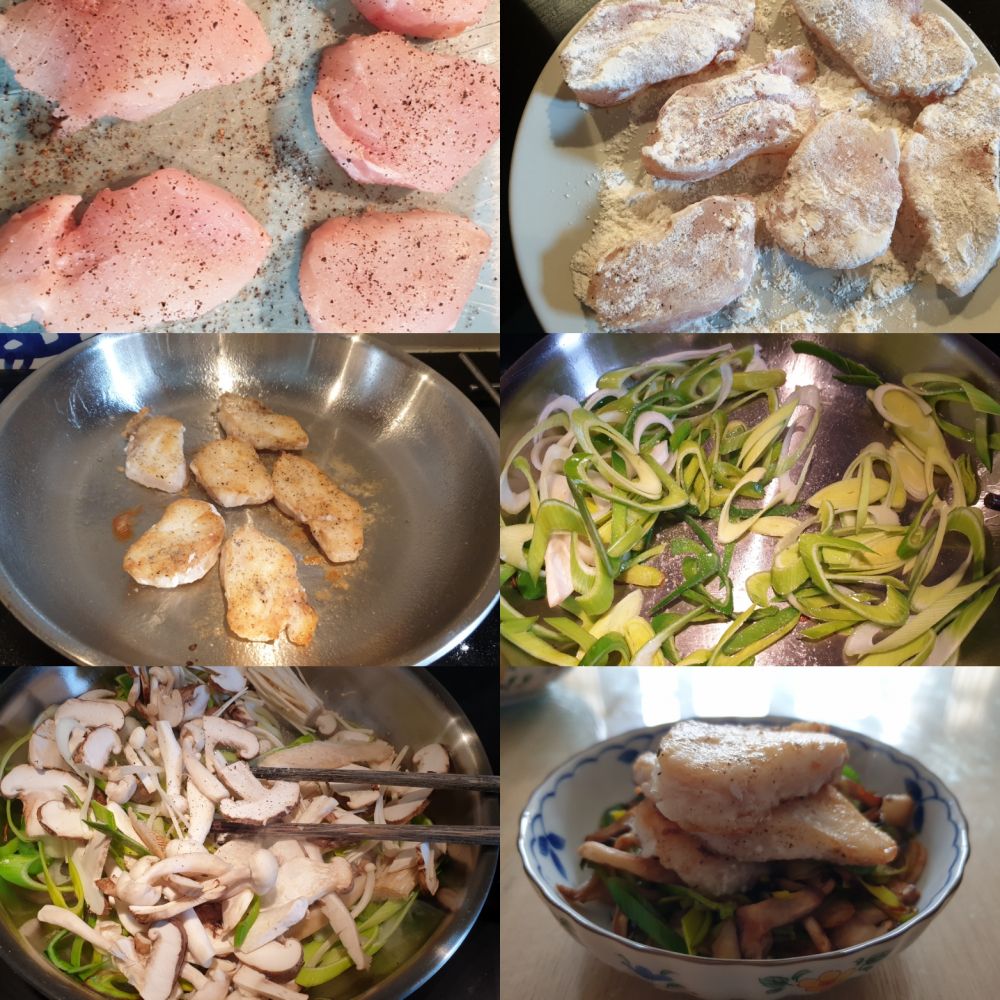新鲜鱼柳(我用的是roodbaars, 英文是rose fish),用盐和胡椒粉稍微腌一下,然后粘一层薄薄的干面粉,在平底锅里煎成两面焦黄。同时在另外一个平底锅,放少量油然后加韭葱翻炒,倒入杂菌(包括鲜香菇、金针菇、白玉菇、杏鲍菇、平菇等等,随意搭配每样一点儿),加少量盐干炒,千万不要加水。等蘑菇出香味,放一小块黄油提鲜,淋上一点儿好生抽,再稍微翻炒一下摆盘上桌。鱼柳鲜酥,蘑菇喷儿香,海鲜山珍相得益彰。