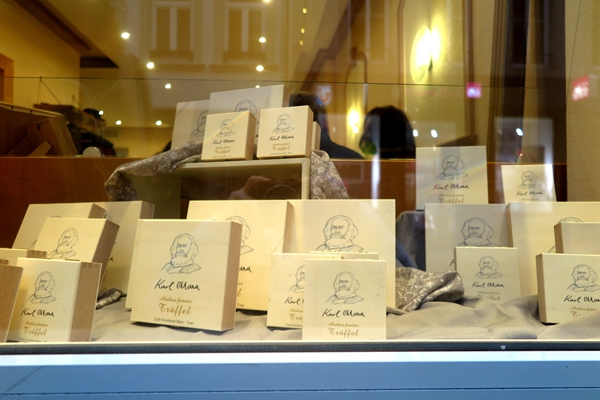 橱窗上摆放着印有卡尔马克思头像和名字的巧克力