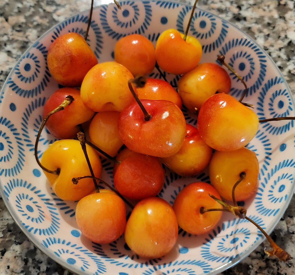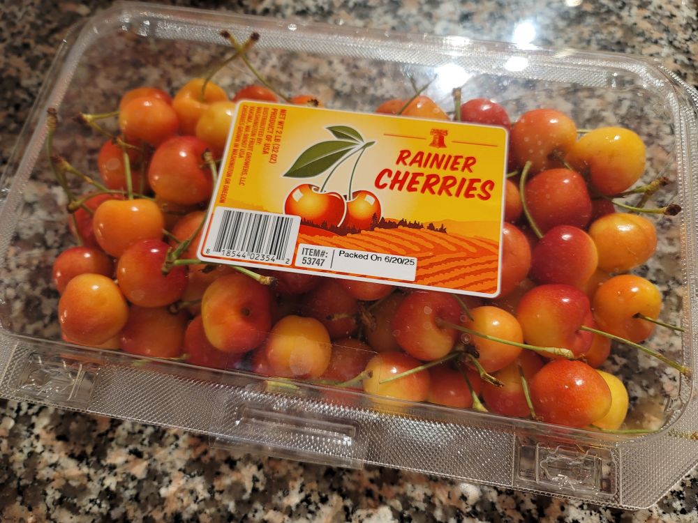 每年期待这个季节有黄樱桃吃,新鲜好吃,前几天11块一盒,昨天9块多一盒。这些水果就怕坏,有些放了几天的盒子底下的就不好了。所以得注意挑一挑。