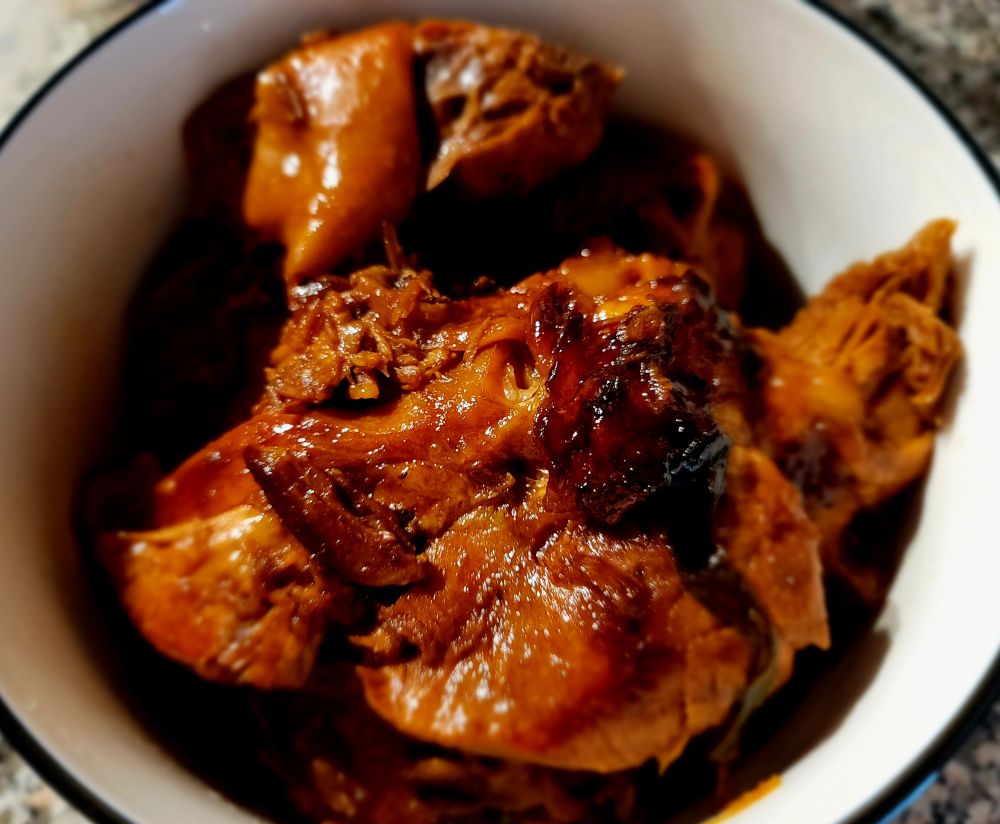 昨天做了一个大肘子,挺大的,比较花力气,但做出来确实非常好吃,切片,每顿饭切点,年纪大了吃不多也不能多吃,所以这种办法非常好。