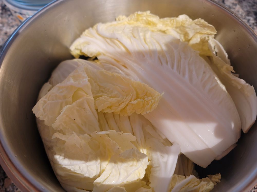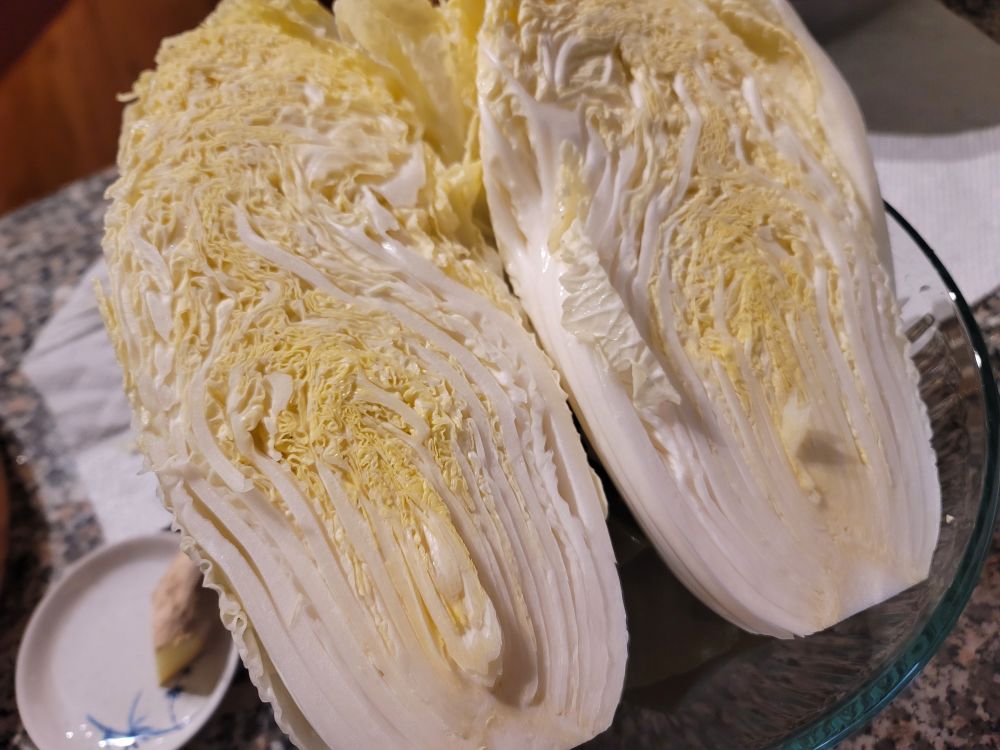 白菜一切两半就行,可别切小了,那就不好吃了。现在视频上各种做酥菜的表演,没有一个是正宗的,所以我对视频上那些尤其讲传统菜的,都不怎么相信。有些只是学点技巧然后按自己喜欢的做就是了。这道菜的味道食材不按老方法做,是不会好吃的。