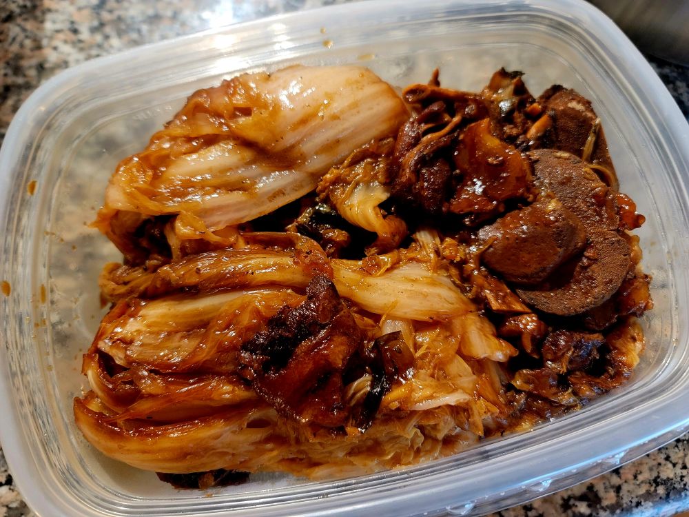 大白菜放最上边,因为它不需要很久就能熟了。尤其现在的白菜没有什么外边的大帮子,当然酥菜不会把白菜搞化了的,酥软真好吃。我是用高压锅做的,不仅仅因为没时间也是因为不能那么炖法,屋子里都是美味儿了也不行:)但我发现同样特别好吃。