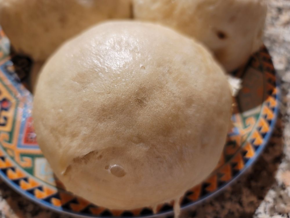 每个周末都要蒸馒头,发完了面家里就没面了,去Costco要买面的忘了,下午又去一趟,这脑子完了:-)不过蒸的效果不错呢。