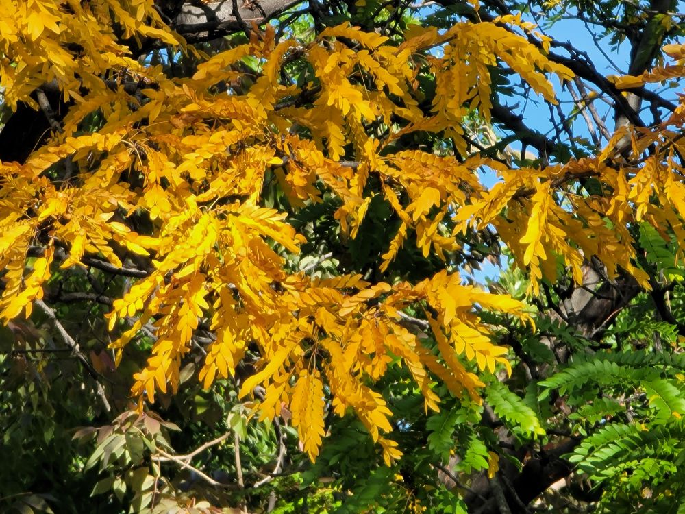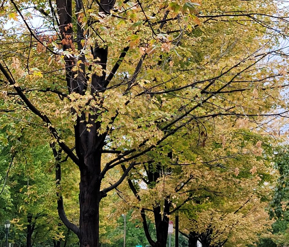 今年的秋天树还没变彩色就黄了叶子干巴巴地都开始掉了,往年的美景没了,估计天天暖和的关系,干燥缺水,树也要猫冬的,所以一急之下叶子就掉了。每年秋天我们这里的秋景很多人都专门来看呢,新闻说今年变得早,我觉得山上也许好点,反正附近是没戏了。