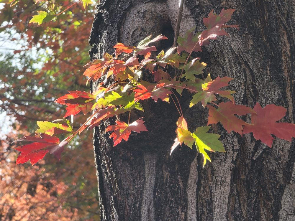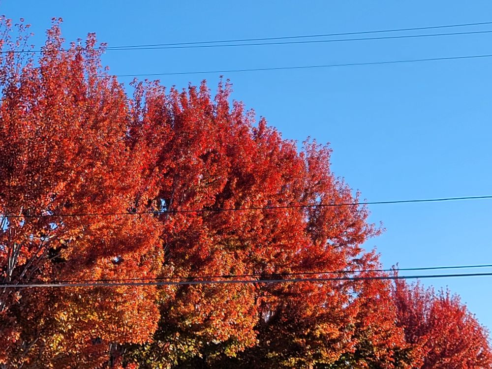 今年的秋叶变得不太好,今天刮大风呢,估计明天就都掉得差不多了,秋风扫落叶,满大街都是树叶,停车场平常喜欢停树下有点阴凉免得车晒得热,现在尽量不停树底下,否则满车都是树叶还得清理。