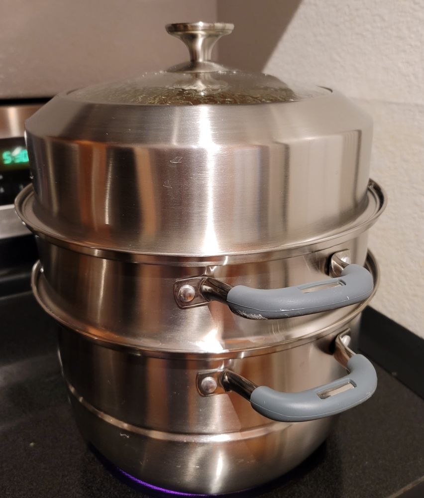 过去的这个周末挺忙的,买了一个新锅,挺喜欢的,它不大但能有三层,这样蒸馒头包子一次可以多整一点,好久没有蒸包子了,因为两屉的锅蒸的少,馒头行,包子发一点面吃一顿两顿的太费劲,所以这回有了三层的就好多了。锅,现在也贵了,这个锅51块,要在韩国店买那就得80左右了。这是中国超市买的,中国出的,质量还行。