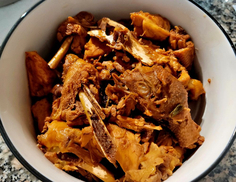 买了一只黄毛走地鸡,酱了一下很好吃,但想想Costco的一只大烤鸡只有5块多,我这只鸡做出来就这么点要十几块还不算工钱、火钱呢:)偶尔换换口味吧,趁着能自己做,还是多吃点自己做的,显着很厨师不是。