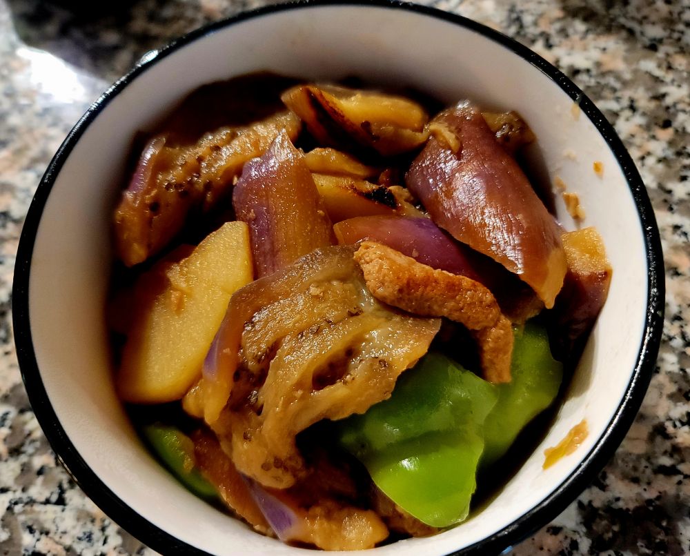 周末去中国超市,买了茄子,青椒,家里有Costco的土豆,做了我的简单清淡的地三鲜。吃着不腻,少油,地三鲜正宗做法是茄子、土豆甚至青椒都要过油的,然后对汁儿做的,肯定是好吃,但是想想也是太油了。我这个就放一点油,稍微煎一下土豆然后茄子放进去炒好的肉丝放进去,差不多了,放青椒片很快就好了,清淡又很香!