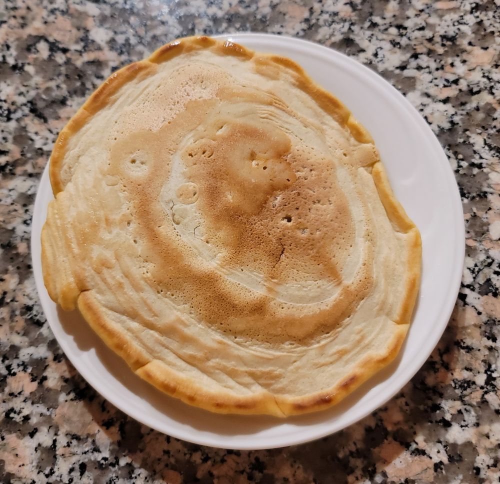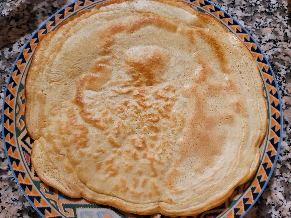 这是我第一天做的摊鸡蛋饼,没有加油,也没有加水,但是特别的香好吃及了,不硬,像糕点。我放的普通面粉,加点白糖一个鸡蛋,一点点苏打,太好吃了,比我用普通锅做得好吃,也没有油烟味儿。