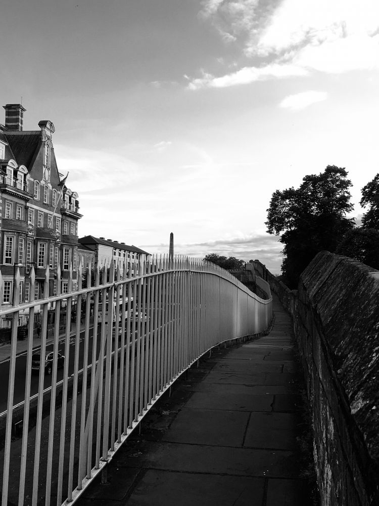 图6: 身边实在找不到东西拍了,违规一次。这是在英国约克郡手机拍的,沿着有现代栏杆的老城墙走进小城的感觉好美妙,城里有电影《哈利 波特》里的那座教堂。。。。。。