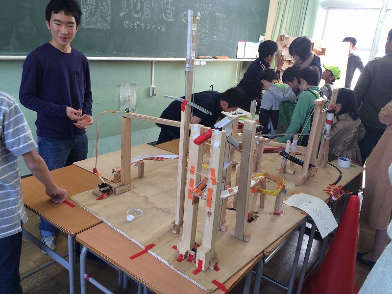 皮特格拉开关游戏,类似多米诺骨牌,虽然看起来非常简陋,据说是孩子们用课外时间,废物利用一块板一个钉子,一点一点制作出来的,凝聚力很多功夫和汗水。