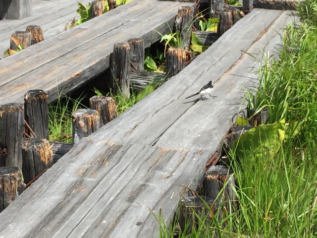 据说经常有熊出没,所以会有提示牌,还有摇铃以备急用。在这些地方的木板路特意加高一些,也尽量为了不让熊和人相遇时发生正面冲突。