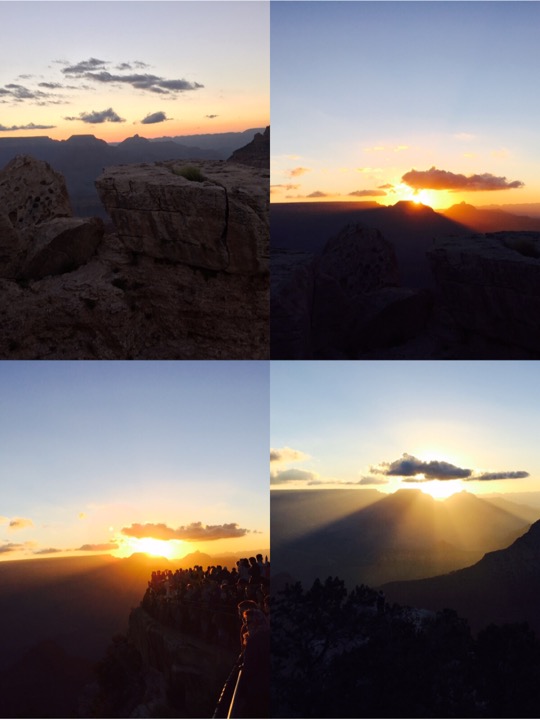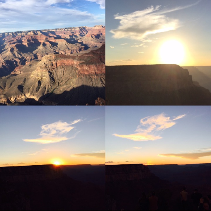 大峡谷公园是在是太广阔了,我们也只是逛了个皮毛,按照旅游指南推荐的地点观看了日出,又到了别处欣赏到日落。尽管没有足够的时间周游,但是还是被它的雄壮的景色感动。