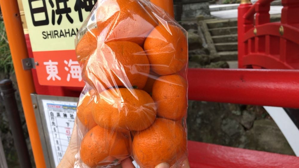 去樱花园的路上有很多无人销售蔬菜水果的小架子,也没有什么现代化的支付方式和监控,旁边有一个装零钱的小箱子,把钱扔里就行了。这袋桔子大约1kg,也只要200日元,比较便宜啦,还比较新鲜。