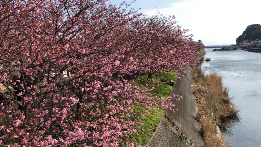 河津川的樱花又叫河津早樱,得益于伊豆半岛的温暖天气,这里几乎算是日本开樱花最早的地方。一般在二月上旬开始就可以欣赏到樱花盛开的美景,比东京要早上一个多月以上。