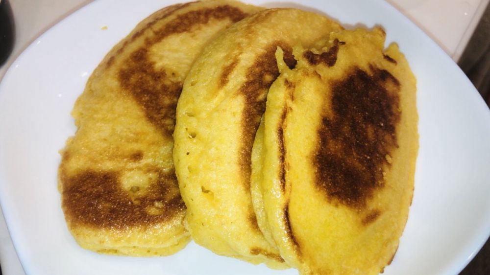 玉米面是去年出差时在国内买的,做过玉米面开花馒头,挺受欢迎的,这周末尝试一下烙玉米饼。