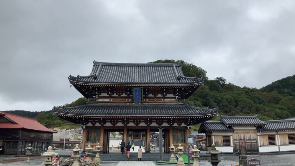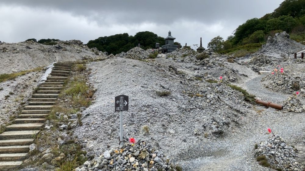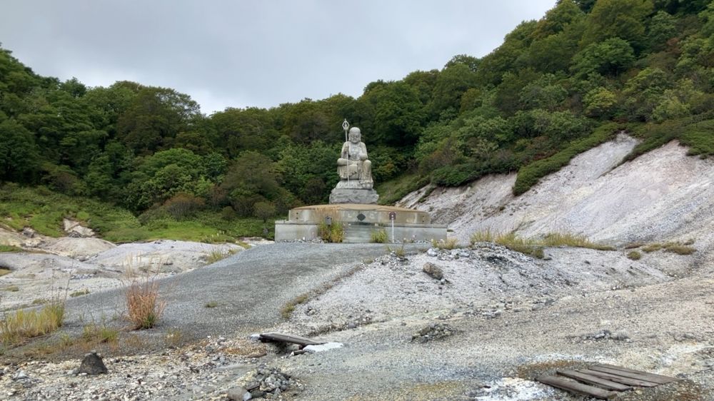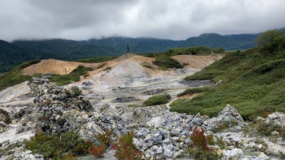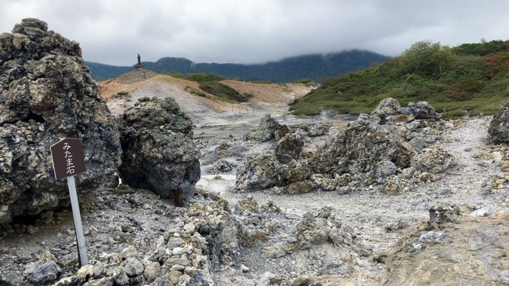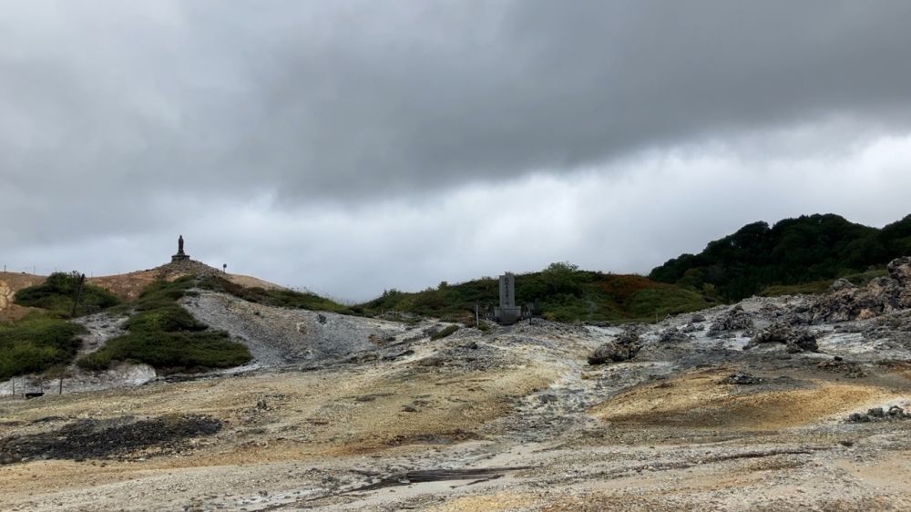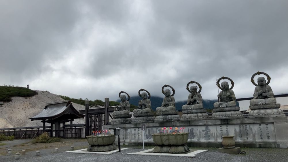 恐山(Osoreyama)位于日本青森县下北半岛中部,是日本三大著名灵场之一,尽管从神社的活动,装饰以及各种雕像造成的氛围来说有一些肃杀的感觉,作为一个游客你就把它当作一个火山口的遗迹来欣赏心情会好很多,就跟你去过箱根的大涌谷一样。