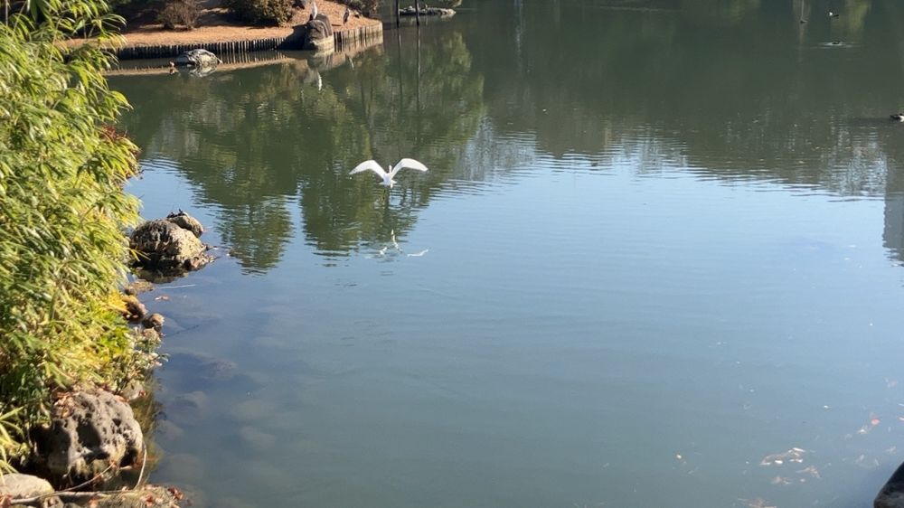 “六义园”园内,无论是幽静的池塘,小桥,潺潺溪流,假山,修剪精美的园林,还是园里的水鸟,仙鹤,浑然一体,无不显示着日式庭园的独特魅力。