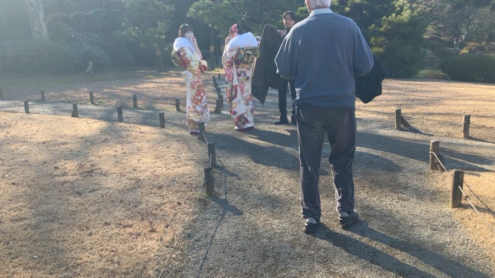 元旦过后大约一个星期左右,日本都会有一天国民假日,用来庆祝步入20岁成年的成年节,参加成人仪式的年轻人都身着盛装,尤其是女孩们穿着和服都非常漂亮。有幸碰到了参加完成人庆祝仪式来到六义园来拍照的女孩们,年轻真好啊。