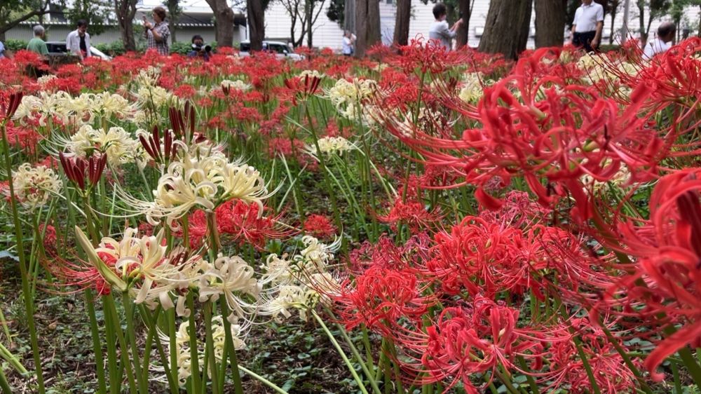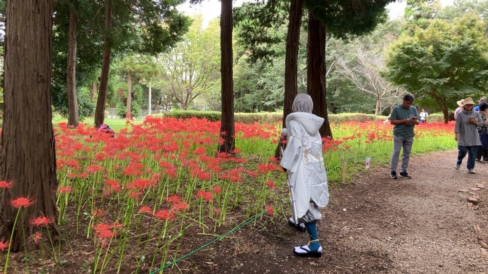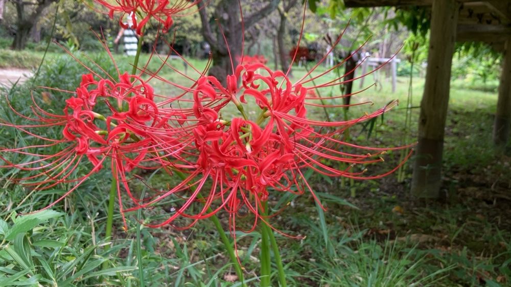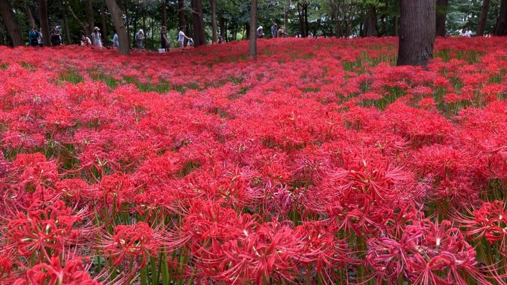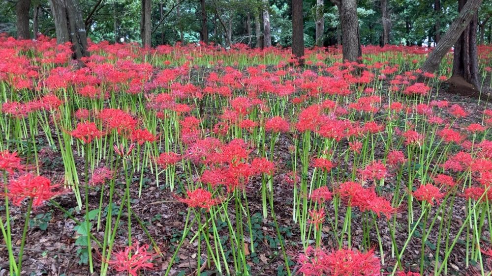 我们在周末特意赶到距离成田机场不远的村上绿地公园,它占地约10.8公顷,是一个以自然风光为特色的大型公园。公园内有丰富的树木和花草,四季景色各异,这里有当地志愿者种植的大规模的彼岸花花田,秋高气爽的时节,吸引了许多游客前来观赏。