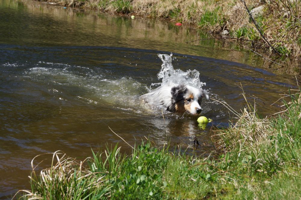 5月10日NIGEL满2岁啦! 生日正好在周末。一周前就安排好怎么过生日了。狗狗不在乎锦衣玉食,有的玩就是最好的。请来了NIGEL童年玩伴FLIP,也是个AUSSIE。两孩子放开玩,尽情地跑啊,真叫一个爽。 1元店买的小装饰,戴上还真好看。 童年玩伴 天气那叫一个好,下水去。 还要玩飞碟,今天要玩个够。 今天对AGILITY没兴趣,说好不上课滴。