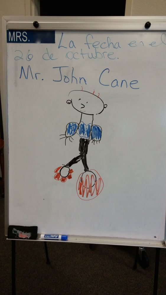选定假想总统,孩子们轮流上台一人一笔集体合作涂鸦出他们手下的总统,并命名John Cane。