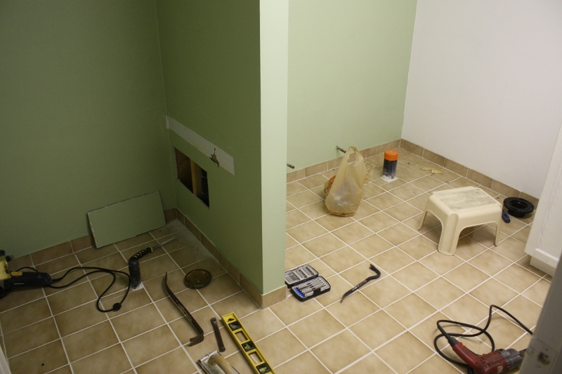 我新买的townhouse里,地下室已经由原房主的先生在十几年前修好了,但是留下了一个未完成的浴室。大约是建筑商建房时做了rough-in ,前房主装修地下室时原准备完成,但后来老先生身体状况变差,就半途搁置成了烂尾工程。我盘算这对我不算难事,只要再加上几百块钱材料和我的几周人工,就创造了几千元的价值,无论是对现在租或将来卖都有好处,那就做吧。