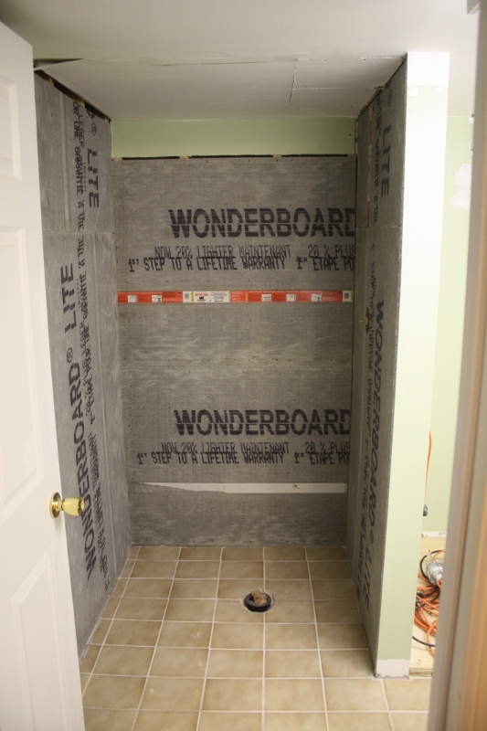 第三步是把原来的三面灰板都拆掉,换装水泥板。这说明我不打算偷工减料糊弄事。如果在灰板上直接贴瓷砖,完成后看不出区别,也可以凑合用一段,但时间长了肯定会出问题,灰板会受潮软化并发霉。要是那样做,我还敢在网上秀吗?