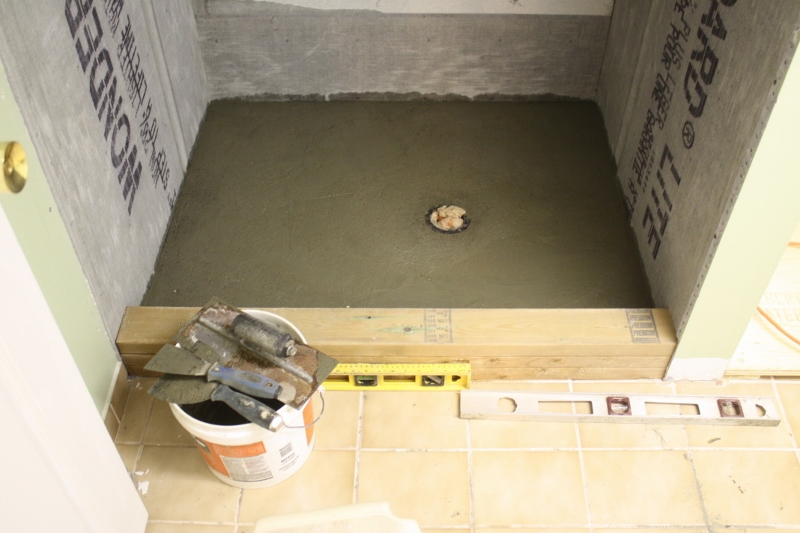 第一步是与马桶的下水管同时,挖地接好下水管口。我以前做过几次淋浴,底下都是用现成的塑胶底盘,这次改成现场做水泥的。事先做了些研究,明白了其防水的步骤和道理。但是因为这里是地下室,下面是水泥地,防水可以简化些。