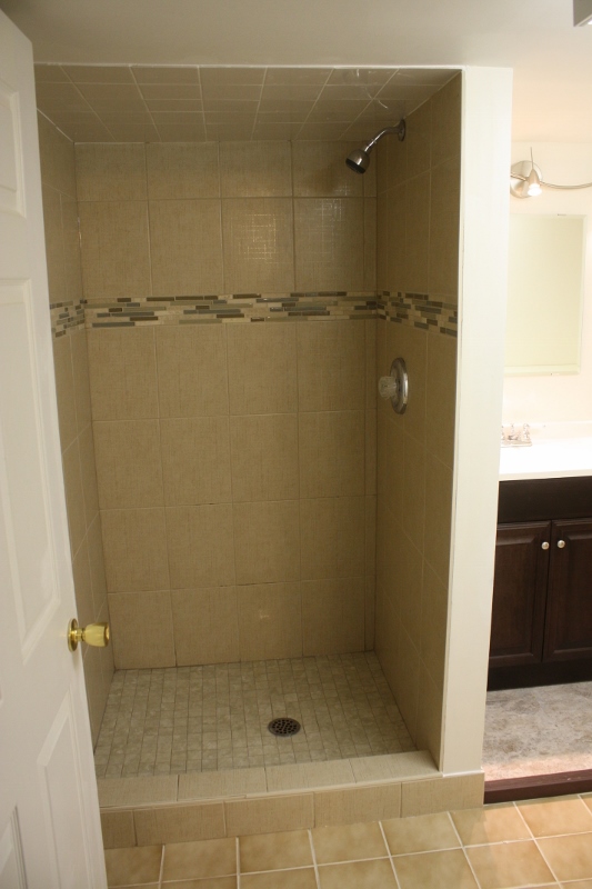 第六步算是收尾工作吧,最后在缝隙表面喷涂了sealer,加上硅胶封边,再装好开关阀和喷头。淋浴间这就算全部完成了,不打算装玻璃门,以后挂个帘子就可以了。