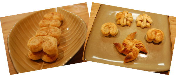 取宽约8厘米的长方形面皮.在面皮的表面撒上粗粒沙糖.按长边从两边卷起.用小刀切出宽约厘米的小块.将一面沾上砂糖.将有砂糖的一面朝上放入烤盘,然后整一下形.本应用粗白砂糖的,家里只有红砂糖,也就将就了,好在没什么本质差别.