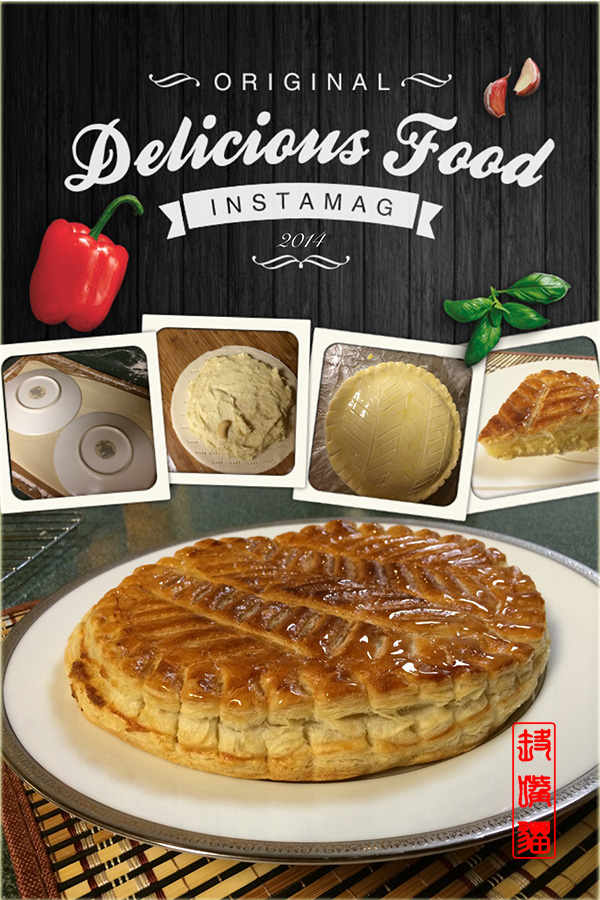 这款点心原本是圣诞法国的特色点心,外皮用千层酥皮,内馅用杏仁粉,糖粉,黄油和鸡蛋。习惯上里面放个小瓷人,谁吃到了瓷人就可以戴皇冠,所以又叫皇冠杏仁酥饼。