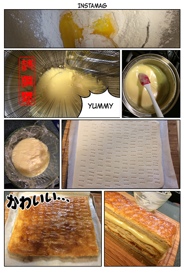 上周做的Vol Auc Vent多出了很多酥皮的边角料,重新整了整,试着做了拿破仑。