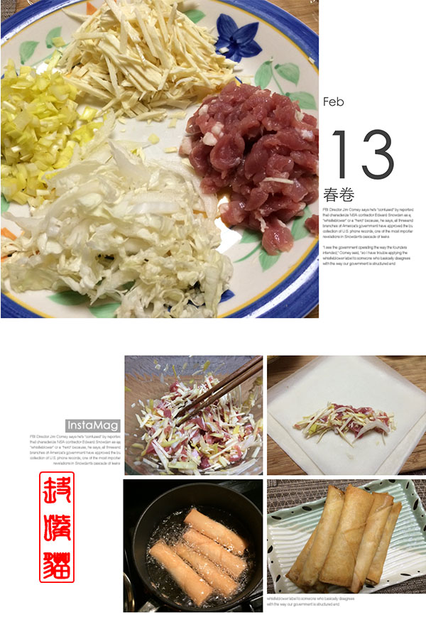 小时候在北方长大,因为没处买春卷皮,基本没吃过春卷。难得吃的一两次,也是大院里的奶奶自己做的春卷皮,和大家分享。后来到了南方,春卷算是很普通的小吃了。一到过年的时候,大街小巷卖现做春卷皮的比比皆是。来美国后,发现中国超市里还有卖机制春卷皮的。