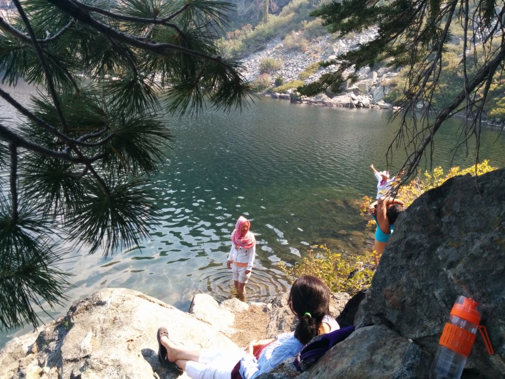 8月20日Linda六人小组来到了雪士达山,在跟明雪和马修的几天散团游玩后,听我们介绍了Michael的情况,有几位伙伴们也想体验一下Michael音钵的威力。这一次与Michael的相遇很富具戏剧性,明雪一直短信帮着大家约Michael,始终约不着。一天Michael忽然发短信告诉明雪:他将在湖边做一个疗愈仪式,大家可以到湖边找他。人可不都有好奇心么,越见不着越好奇想见,于是十几个伙伴兴冲冲开到Castal lake找他,沿湖边兜了一圈,安安静静的,除了水声鸟声松涛声,什么音钵声都木有啊?大伙儿倒是被安排无意中送了一群滞留的印第安无形兄弟回到光中。