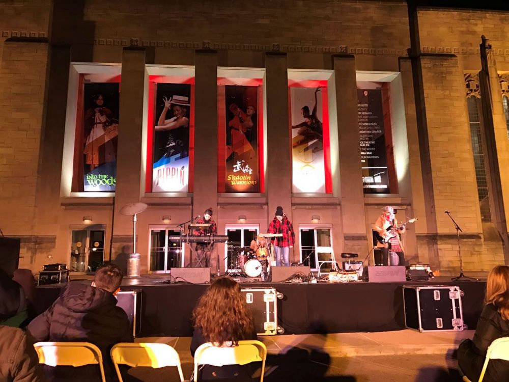 天气突然降温了,一下又从春意融融退潮到春寒料峭。艺术学院门口正有一个露天音乐会,几个乐手在上面缓缓扭动身体,弹吉他和歌唱。其中一个女的穿的黑丝袜,外面套了热裤,性是性感,就是看得人哆嗦。听众倒是不算少,周围还有好多小吃摊。空气很冷,气氛却热辣。我们没有在此停留,径直进了艺术学院。