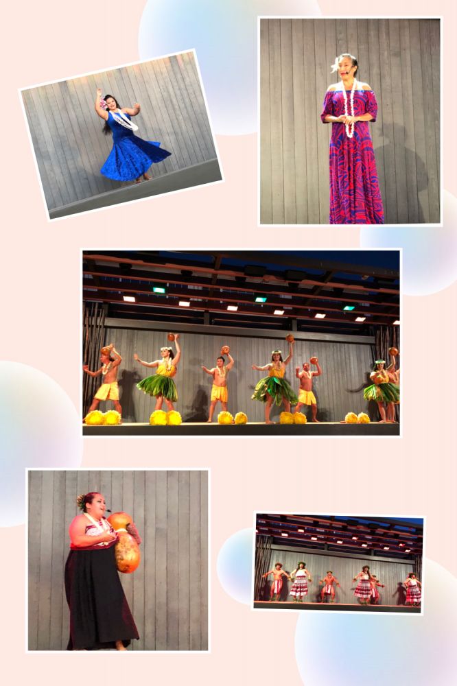 节目单上介绍,这场盛宴包括了太平洋群岛中四个岛国的民族歌舞:夏威夷,奥特亚罗瓦(新西兰), 大溪地,还有萨摩亚。 在每个民族的表演之际, 特色的民族食品也相应地端上桌来, 客人们边吃边欣赏。
