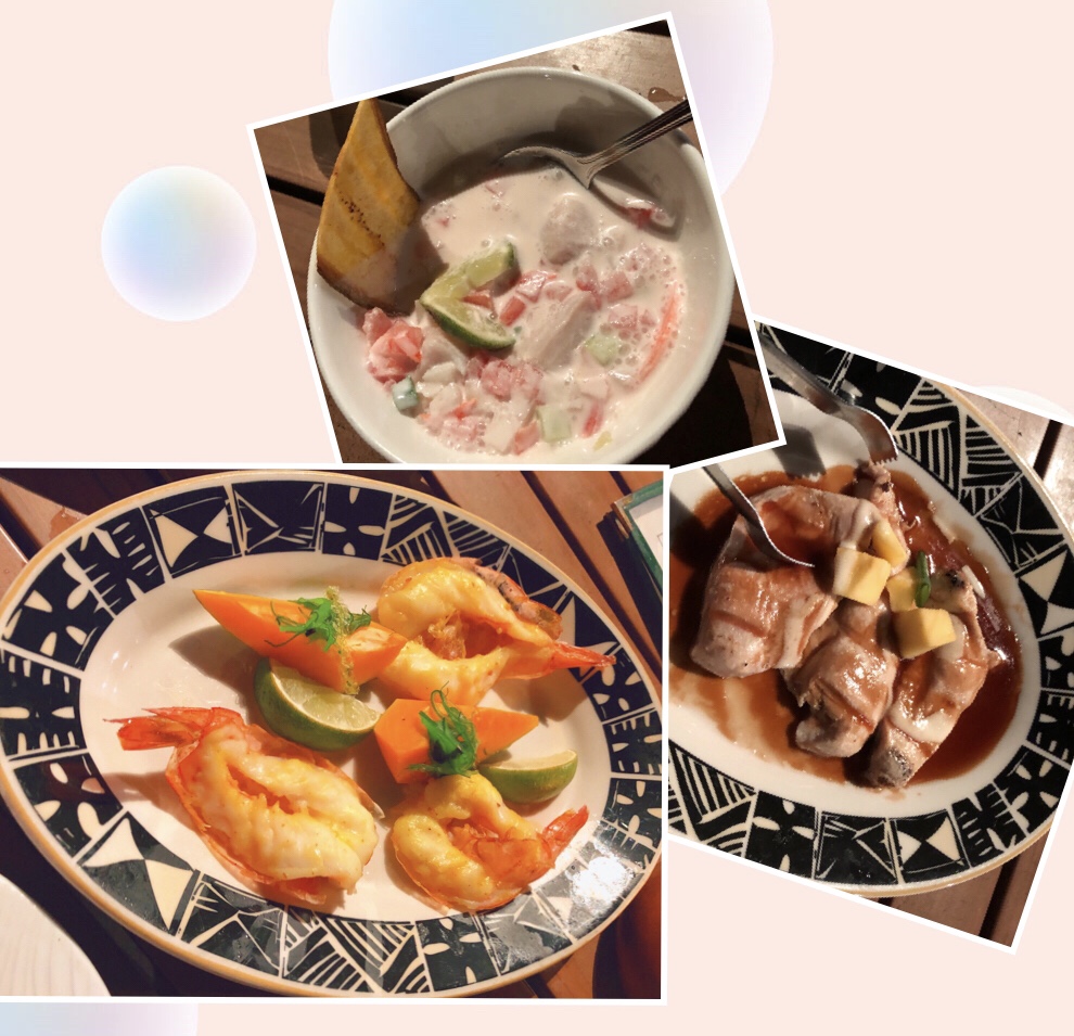 天色渐渐暗了下来。Luau 开始了。桌子上已经放上了开胃小吃,是波利尼西亚传统香蕉和莫洛凯薯片配上热带莎莎酱和海藻。