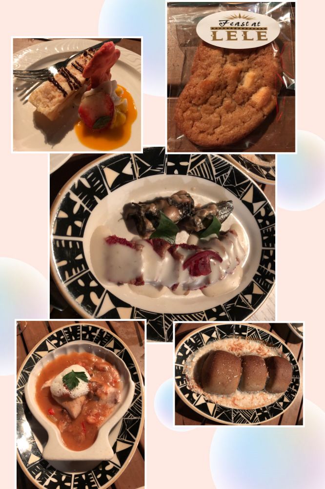 餐后的甜食自然少不了:椰子香草慕斯蛋糕配焦糖菠萝和咸焦糖,还有一块带着“Feast at LELE” 标志的饼干。