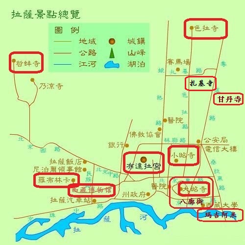 还剩7个是:1)八廓街(也叫八角街)、2)扎基寺、3)哲蚌寺、4)色拉寺、5)甘丹寺、6)布达拉宫、7)玛吉阿米。