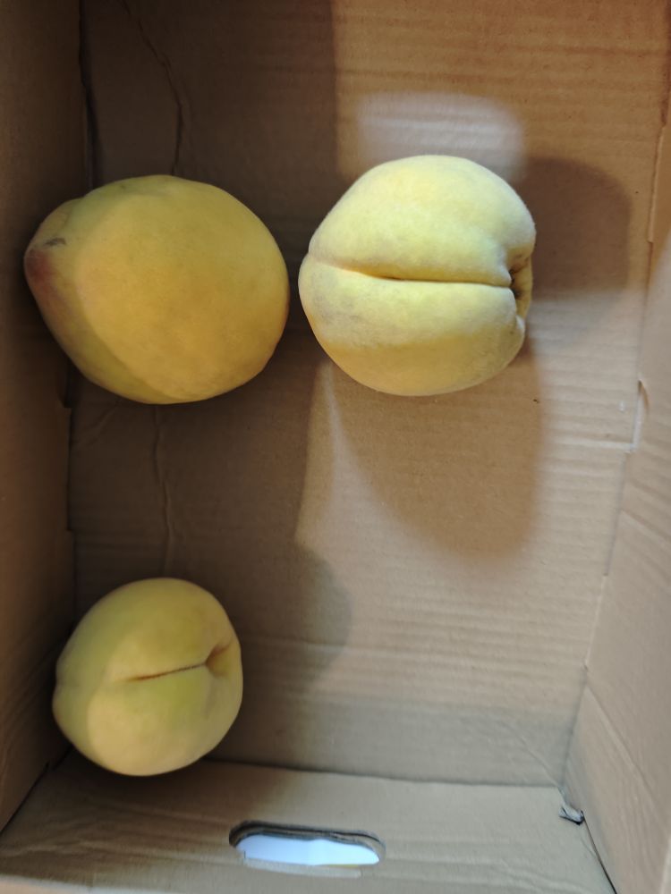 那天,嫂子突然问我地址,说要给我寄黄桃,是她同事的爸爸自己种的有机黄桃,她已经尝过了,味道很好,想让我们也尝尝,于是很快收到两盒,果然超级好吃。原以为还剩一周我们就要出远门,两箱黄桃吃不完,没想到,还没等到我们出门,两箱全部消灭干净。