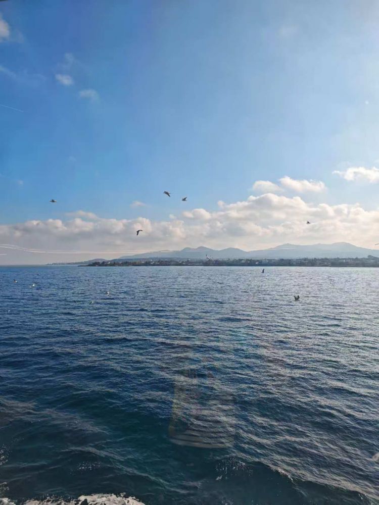 每到一座临水城市,天气晴朗的日子,总想乘船看看风景。蔚蓝的海天交汇处,常有海鸥翩然点缀,让整幅画面灵动而充满生气,而我常常会因为这样的美景而感动。从雅典到埃伊娜岛我们坐的船耗时1小时10分钟,当然还有别的选择,最迅速的快艇只需40分钟,更慢的1小时25分钟,当然价格也是越快的船越贵。