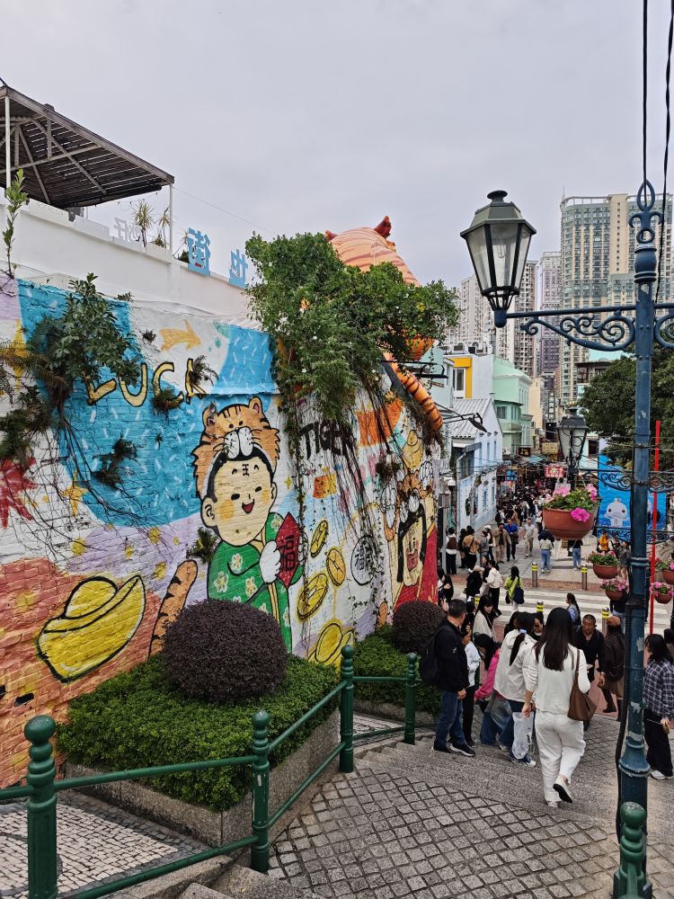 比赛虽然没有看尽兴,但是澳门的街道确实丰富多彩的,壁画跟街道墙壁成一体