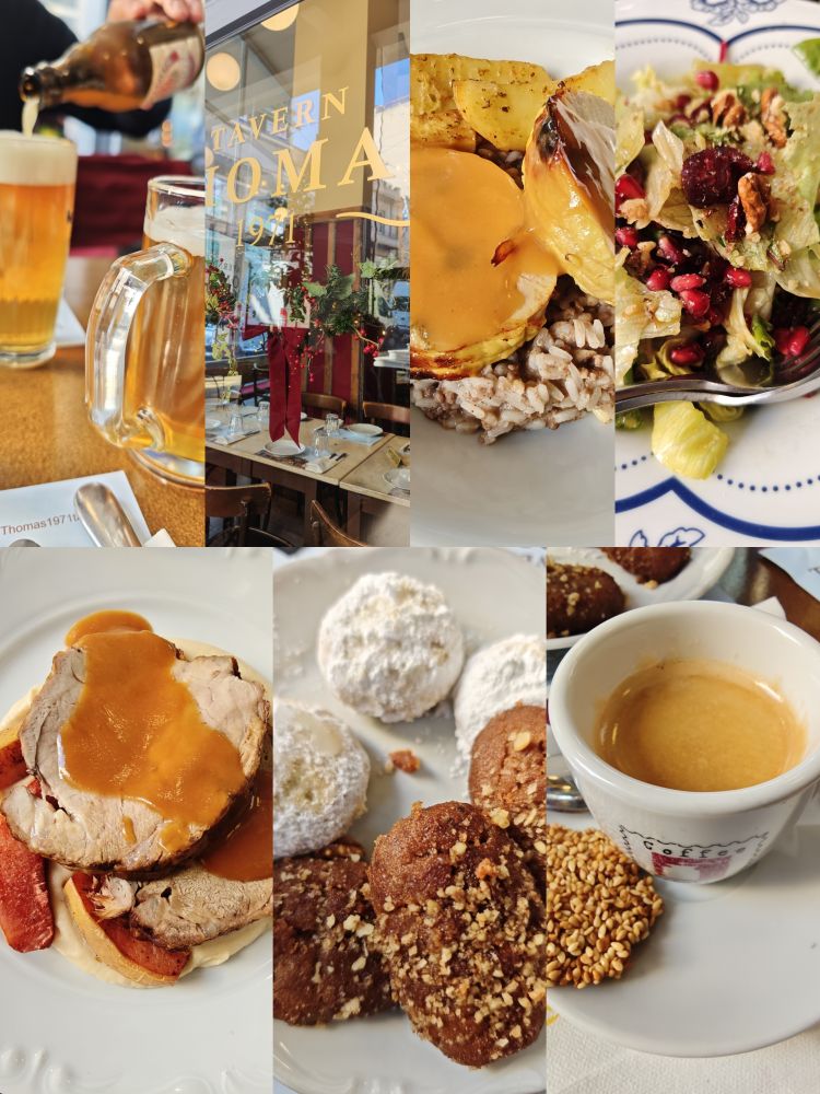 Tavern Thomas 餐厅是酒店给我们推荐的,因为圣诞节那天,很多餐厅都关门,酒店给我们推荐了这一家,并且打电话确认那天这家餐厅开门。看网上,这家评分也很高,所以我们满怀期待,但是那天他们只供应圣诞午餐,所以选择非常有限,而且味道对我来说真不怎么样,倒是最后我们点了咖啡后送的希腊饼干还不错,尤其是白色的那款。其实这两种饼干酒店都有免费供应,我尝过一次,太甜,所以之后换酒店的时候我就不尝了,这次餐厅的服务员特意推荐,我就尝了一下,没想到非常好吃,也不那么甜,配一份意大利浓缩很棒。