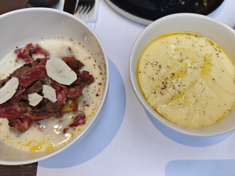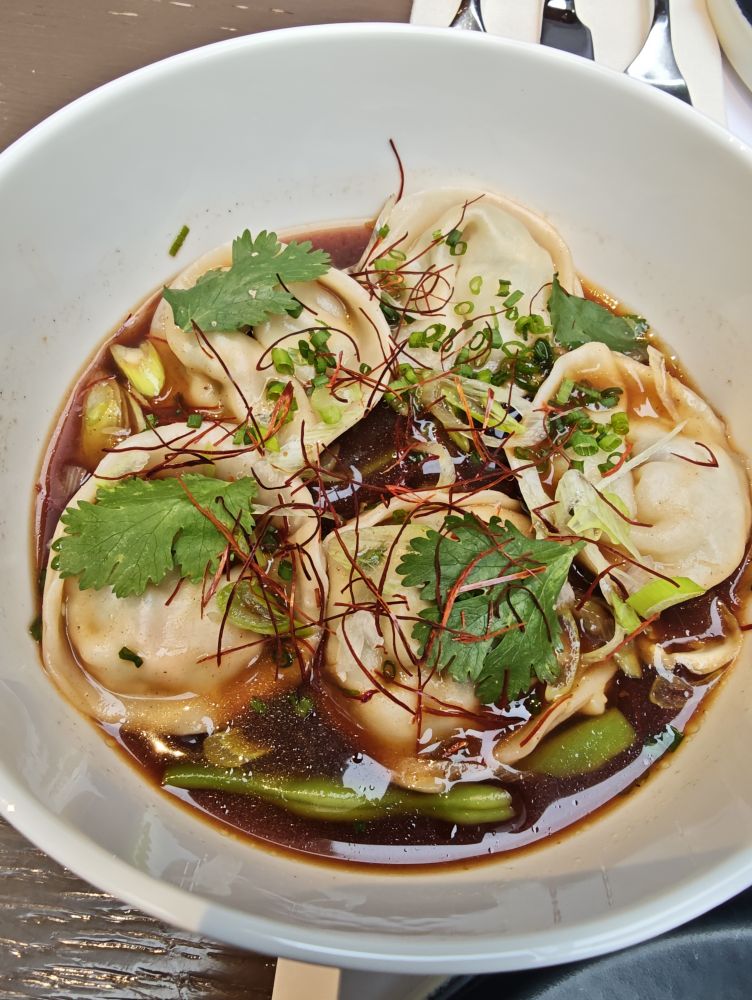 米其林推荐的融合餐厅La liste mediterranean,我们没有特意去找,只是在瞎逛的时候看到了,就坐下来吃一顿。我发现融合餐厅的菜容易踩坑。有一道菜端上来一看是馄饨,一共只有五个,味道真是融合得好难吃。虽然是米其林推荐,但这是我在雅典吃到的最难吃,量最少且不便宜的一顿午餐。