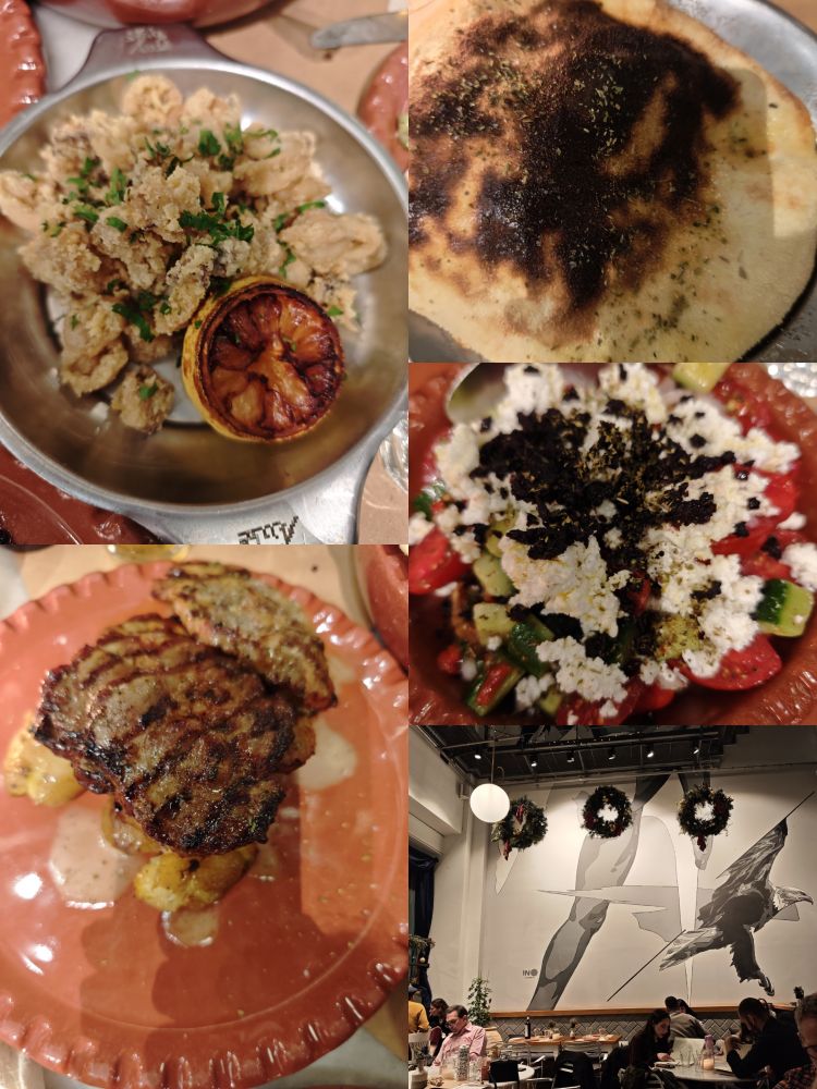 再来说说希腊的吃喝:希腊的食物一般都不会难吃,不管是便宜的还是稍微贵一点的。跟大儿子出门,他是热衷吃的,所以在去希腊之前,他的手机里已经存下了一些餐厅,有些是米其林推荐,有些可能是朋友推荐,我就跟着他走。到雅典的第一顿晚餐我已经在希腊行2里面讲过了,那就再说说我们吃过的几个餐厅/咖啡厅,有喜欢的,也有不满意的。