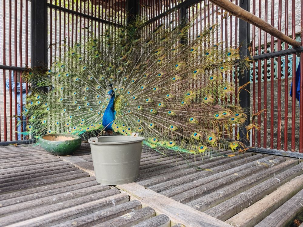 孔雀很乖,还开着屏往各个方向转了一下。